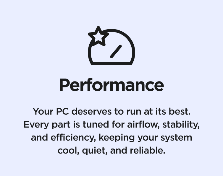 For over 20 years, builders have trusted NZXT for reliable parts that fit seamlessly into any setup—mixing brands, styles, and ideas to make every system their own. Each component is crafted for performance, quality, design, and usability, so you can build with confidence.